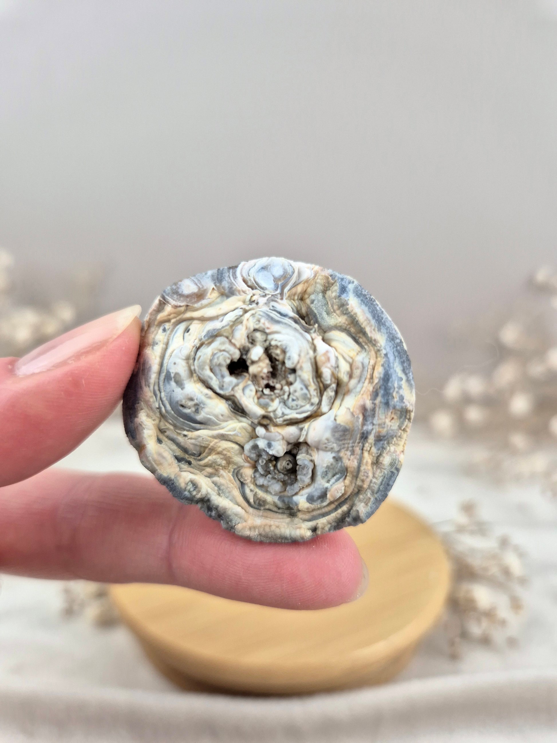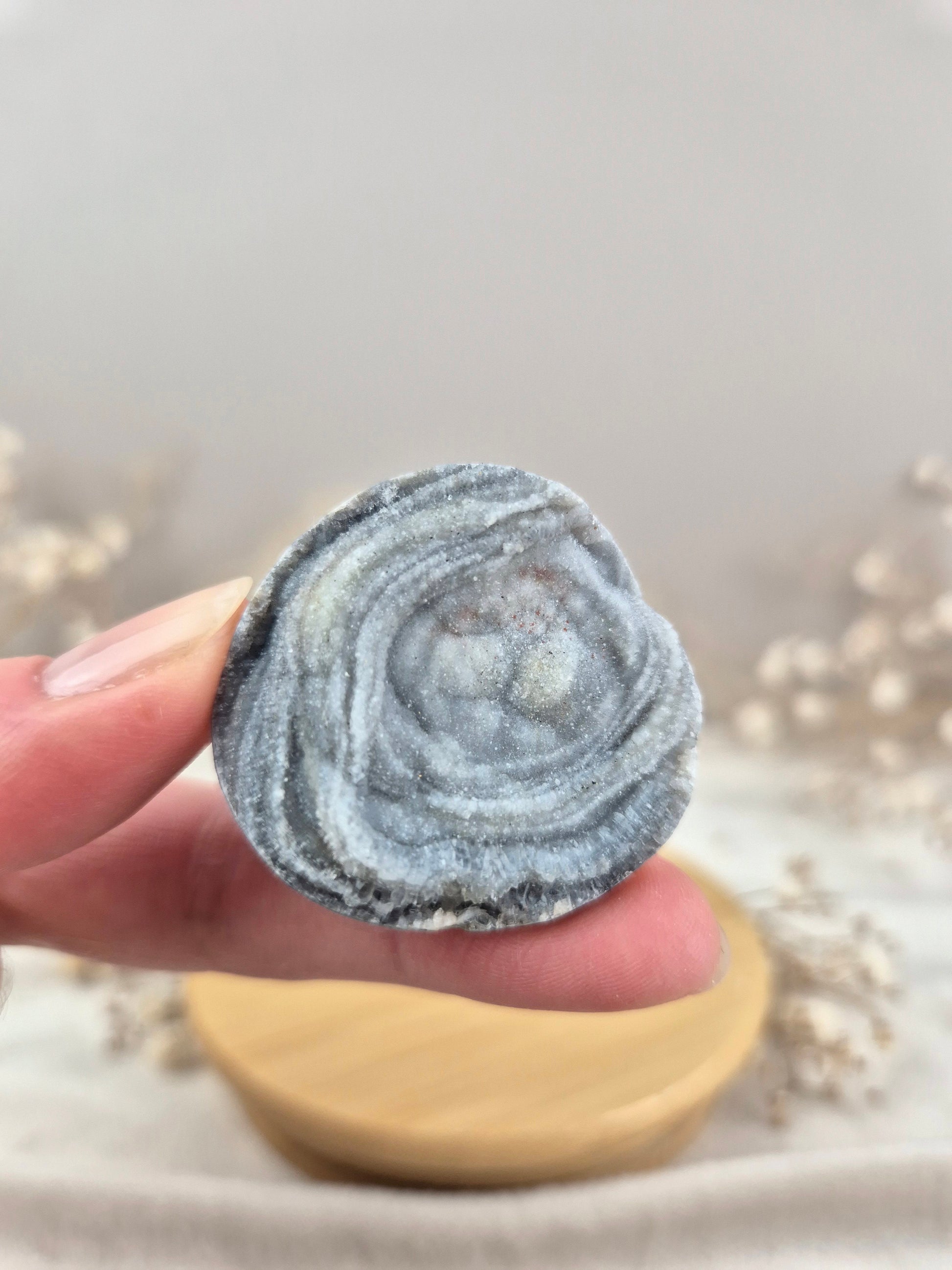 Chalcedon Rose mit poliertem Rand und faszinierender, gräulicher Struktur ⋆˙⟡ .
